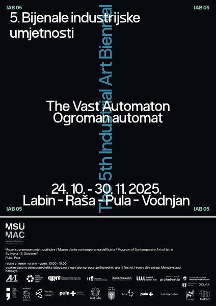 Izložbena cjelina 5. bijenale industrijske umjetnosti u prostorima Muzeja suvremene umjetnosti Istre – Museo d'arte contemporanea dell' Istria realizira se u kontekstu Godišnjeg izložbenog programa ustanove uz podršku Upravnog odjela za kulturu i zavičajnost Istarske županije - Regione Istriana, Ministarstva kulture i medija Republike Hrvatske, Grada Pula - Pola i Turističke zajednice Grada Pule. Može se pogledati od 24. 10. do 30. 11. 2025., svakim danom osim ponedjeljka i blagdana od 10.00 do 19.00 sati.